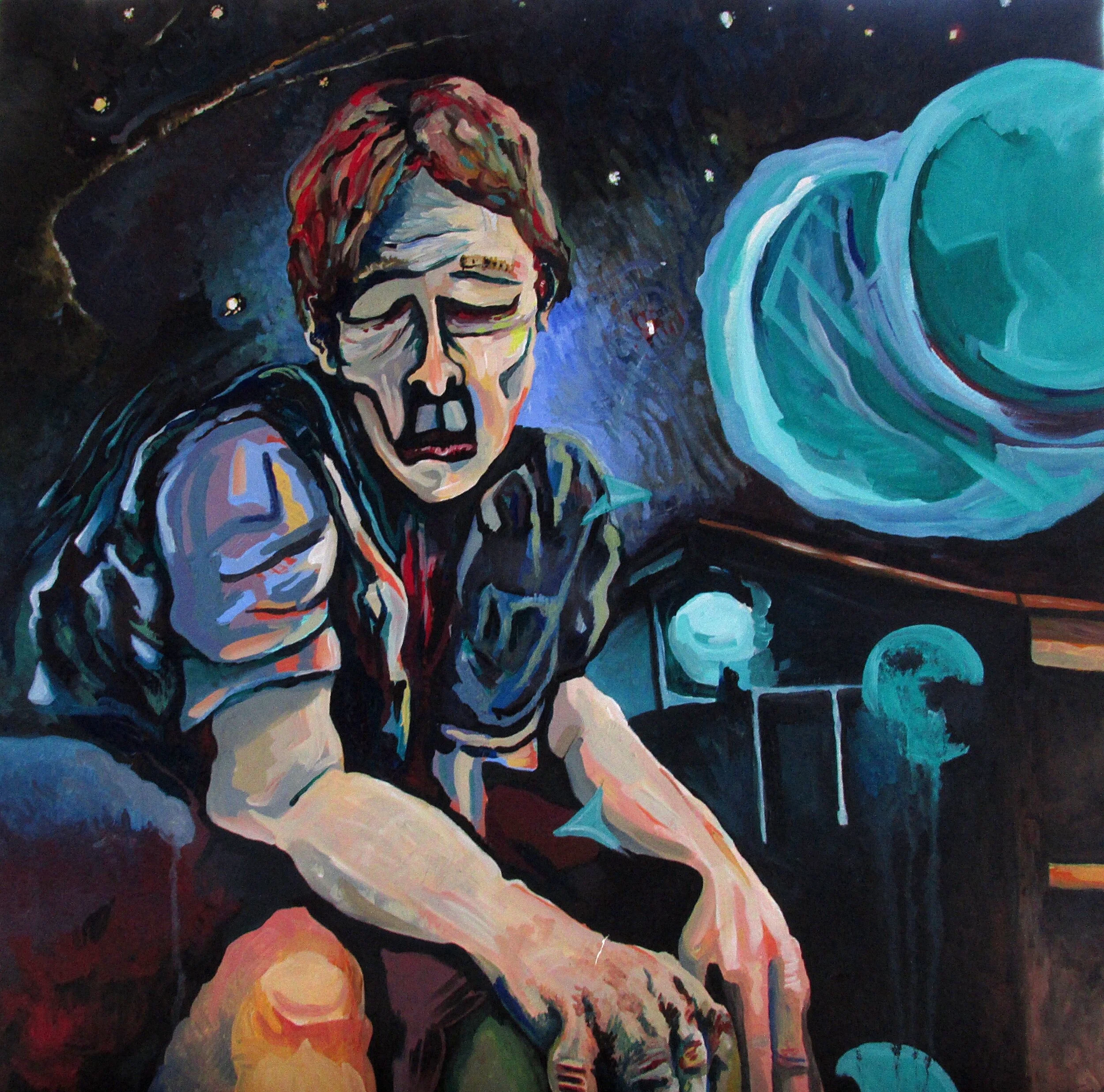 Self-Portrait In the Retention Pond / Acrylic and oil on canvas / 2019 / 24x36